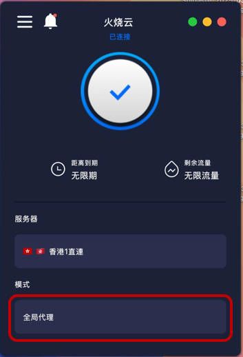⚠️ 連接時,请将代理模式切换至【全局模式】,并使用延迟小的节点