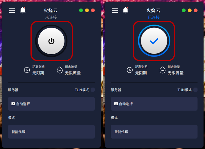 4. 登录账号后进入主画面,点击【连接】即可成功连接加速器,再点击一次即结束连接。