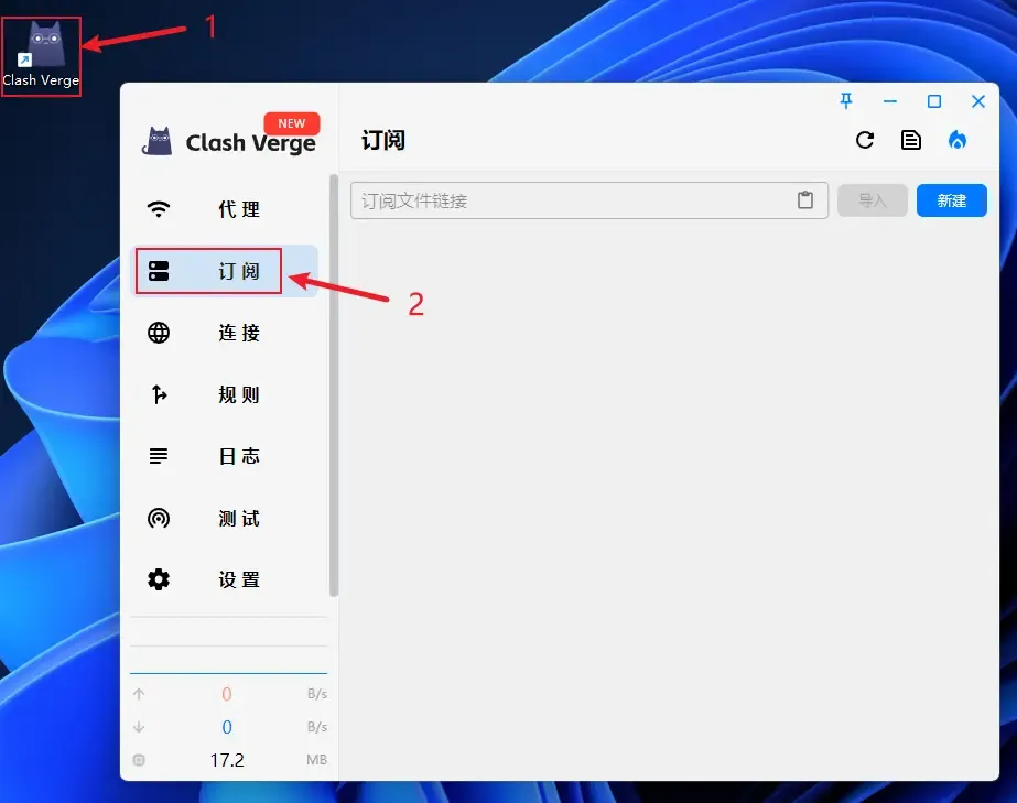 2. 打开安装好的Clash Verge软件,进入【訂閱】頁面。