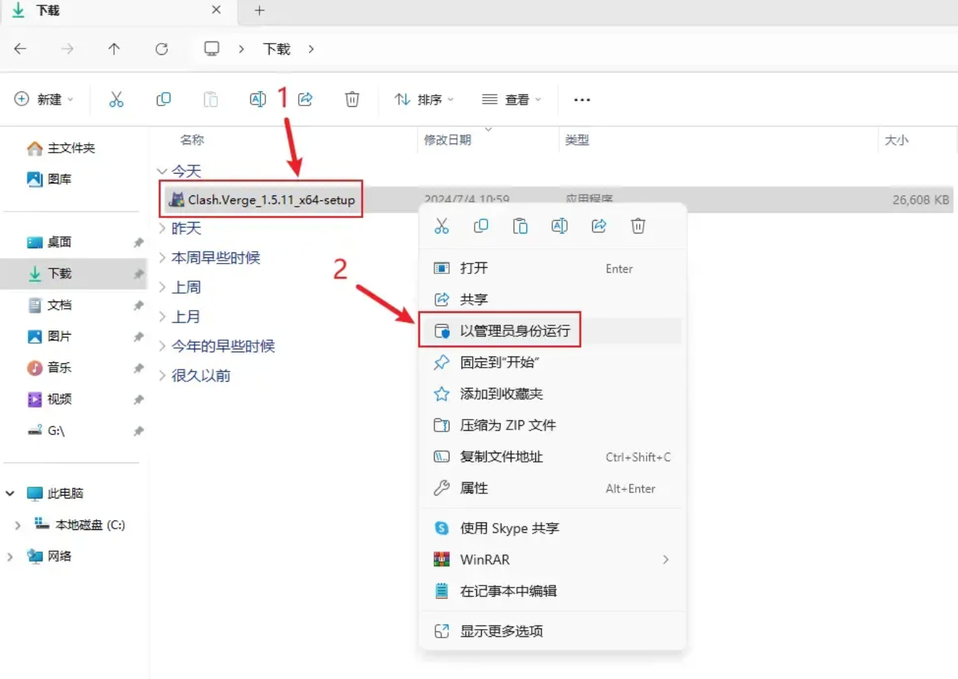 在下载好的程序上点击右键,选择【以管理员身份运行】。