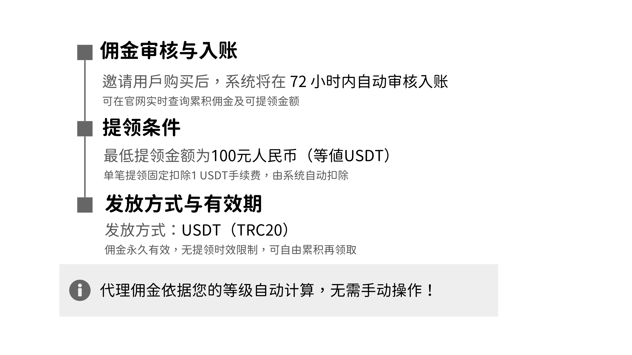 从默认的推广邀请制度申请成为代理佣金身份,系统将按照以下规则处理: