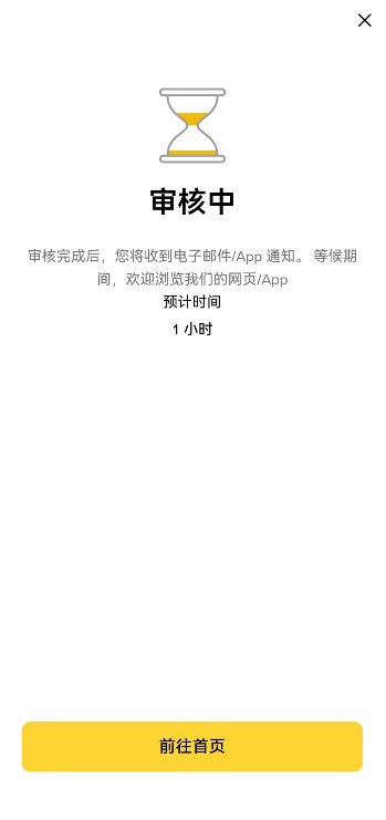 - 逐一完成条件会显示绿勾勾,再点击继续,币安账户及初步创建成功。